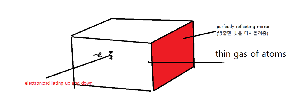 거울에 의해 방출한 빛을 gas가 다시 흡수함 그러므로 oscillator can maintain kT of energy. (차원보다는 에너지가 유지가 됨이 중요하다.)